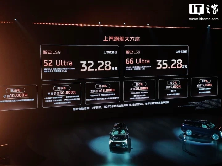 IT之家 11 月 12 日音问,智己汽车旗下全新六座大型 SUV 智己 LS9 已追究上市,共推出 52 Ultra 和 66 Ultra 两款车型,上市权柄价远隔为 32.28 万元和 35.28 万元。